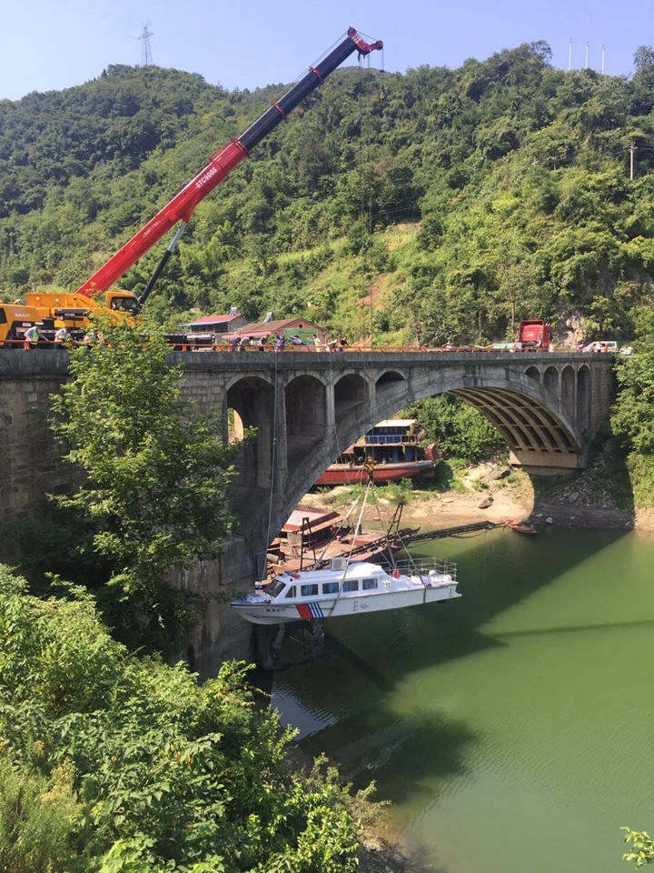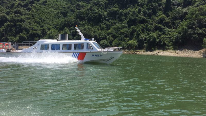 7月25日,省地方海事局配发西乡县的“陕海巡59”巡逻艇吊装下水正式列编执行任务。该艇由湖南桃花江游艇制造有限公司建造,总长13.8米、型宽2.48米、型深1.2米、单机180千瓦、乘员13人、设计航速40公里/小时、续航能力4小时。“陕海巡59”艇主要用于汉江石泉库区执行日常巡航、水上安全监管、航运海事执法、开展搜救及防污染工作等重要任务。